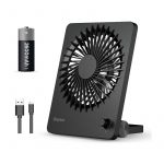 Si bien el ventilador no tiene un cabezal ajustable ni capacidades multidireccionales, es lo suficientemente delgado como para que todo el cuerpo se gire fácilmente en cualquier dirección que elija. Este ventilador de escritorio se puede alimentar con seis baterías de celda D para un funcionamiento portátil e inalámbrico, aunque debe mencionarse que las baterías no están incluidas. Sin embargo, debido a que el ventilador tiene opciones de fuente de alimentación dual, un cable adaptador de CA de 4.9 pies viene con el ventilador, lo que le brinda la posibilidad de simplemente enchufarlo si las baterías se agotan o si la configuración de su oficina en casa está mejor equipada para un ventilador de escritorio con cable.