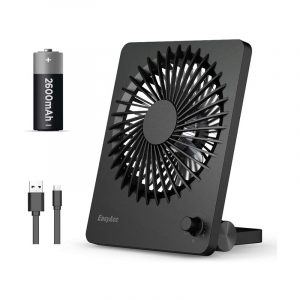 Para aquellos que buscan agregar un ventilador de escritorio a su oficina en casa, pero no quieren preocuparse por los cables, el ventilador de escritorio portátil recargable EasyAcc se carga en solo cuatro horas con el cable USB incluido y un puerto o adaptador USB con alimentación. La batería permite que el ventilador funcione durante 10 horas en la configuración más baja o durante cuatro horas en la configuración más alta antes de que sea necesario recargarlo. El diseño compacto se adapta cómodamente a la mayoría de las estaciones de trabajo, pesa solo media libra y mide 8 pulgadas por 5,6 pulgadas por 1,7 pulgadas.